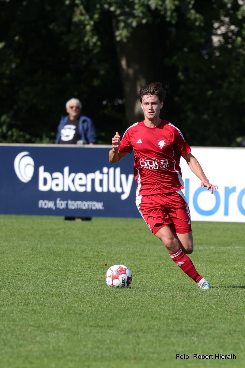 Mikkel "Rumle" Hedelund scorede kampens første mål. Her er den lille dribler på vej forbi en MorudVeflinge spiller (Foto: Robert Hierath)