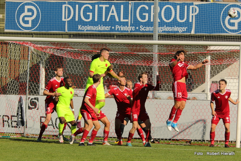 Dalum IF forsøger at få bolden ud af farezonen efter et hjørnespark i kampen mod Ishøj IF (Foto: Robert Hierath)
