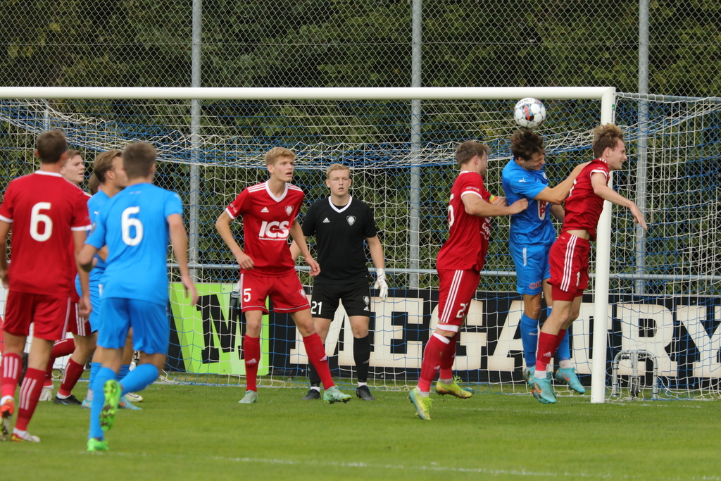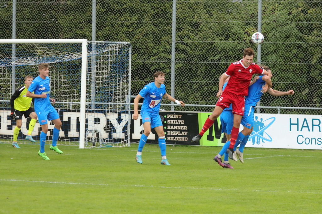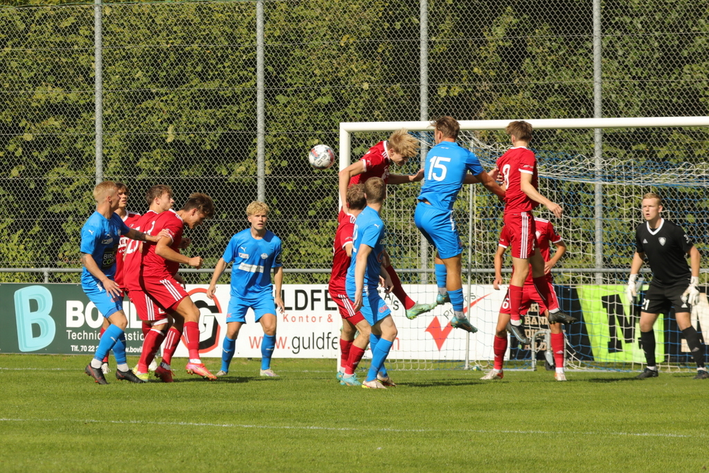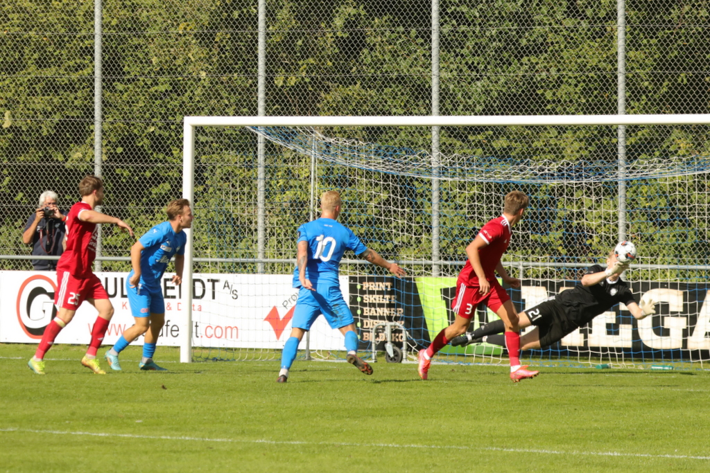 Lasse Schwertfeger har netop headet mod mål og keeper Würtz parerer flot (Foto: Robert Hierath)